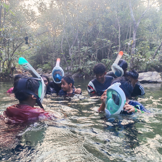 Snorkelling Session – Dive into crystal-clear waters to discover marine wonders while learning basic snorkelling techniques.